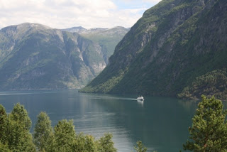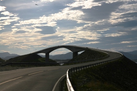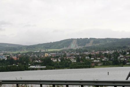 Bei Atnosen bogen wir dann rechts ab auf den Friisvegen, der uns wieder auf eine Hochebene bis über 800 Meter Höhe führte. Flechten, Moose und einzelne kleine Bäume begleiteten uns 40 Kilometer lang. Je höher desto kälter, brrr... das Thermometer zeigte uns jetzt 7 Grad an. Der Himmel war immer noch von dicken Wolken verdeckt. Wenigstens regnete es nicht, es tröpfelte nur. Die letzten 10 Kilometer nach Ringebu ging es nur bergab. Mit jedem Meter abwärts stieg auch die Temperatur. Der Himmel riss auf und ließ die Sonne immer mehr durch. Unten angekommeneempfing uns das Gudbransdalen mit 24 Grad. Endlich konnten wir die warmen Sachen wieder verstauen. Die E6, die Hauptverkehrsader in den Norden von Oslo nach Trondheim, ist teilweise vierspurig ausgebaut. Schnell erreichten wir gegen 11:00 Uhr die Olympiastadt Lillehammer. Bei einem kurzen Abstecher in die Stadtmitte stärkten wir uns mit Kaffee und Kuchen für die Weiterfahrt.
