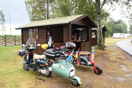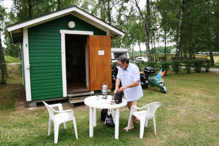 Nach dem Besuch des Souvenirshops und dem obligatorischen Kaffee fuhren wir bei nassem Wetter weiter zu unserem Etappenziel in Karlsborg, dem Tor des Götakanals in den Vätternsee. Auf dem gut belegten Zeltplatz bekamen wir doch noch eine freie Hütte. Diese stellte sich bei der Erstbesichtigung als die Schönste auf unserer Reise heraus. Sauber, bequem, gut eingerichtet, mit einem schönen überdachten Vorplatz und einem hervorragenden Preis-Leistungs Verhältnis. Wir beschlossen spontan hir noch einen Tag Pause einzulegen.