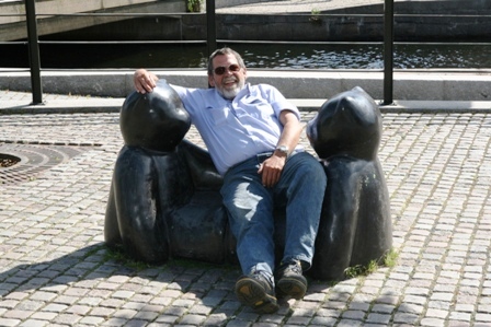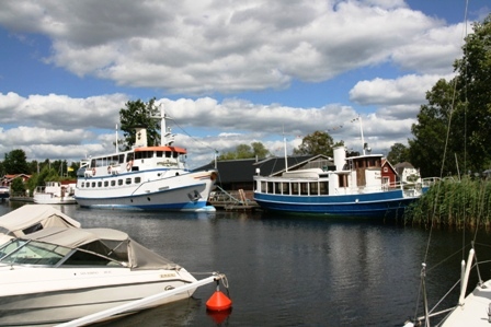 Der Sonnenschei wurde schon unheimlich. Wieder nur ein paar Wolken am Himmel. Auf zur nächsten Etappe. 08:00 Uhr Abfahrt am 09.07.2010. Am Westufer des Vätternsee entlang nach Süden. In Hjo machten wir eine kleine Pause am Hafen. Alle sah aus wie in einem Museum. Eine alte Eisenbahn, ein altes Ausflugschiff, schöne alte Boote im Jachthafen. Dazu die Holzhäuser entlang der Straße. Einzig modern die Skulpturen am Rand des Stadtparks.