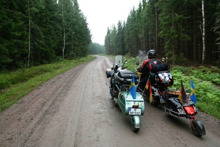 Bäckhammar und Gullspäng waren die Stationen auf der Weiterfahrt bevor wir bei Otterbäcken die Richtung zum Vätternsee einschlugen. Anfangs war es ja noch eine einfache kleine Landstraße. Ab Hova, mit zunehmender Trübung des Himmels durch fette Wolken, wurde langsam die Straße ungemütlich. Über Algaras, Högshult, Myrhult und Satra, auf feuchten Waldwegen, teils mit losem Schotter, teils wie Schmierseife rutschig, lernten wir das Innere von Schweden kennen. Also Vorsicht bei Starßen, die aus den Landkarten weiß abgebildet sind.