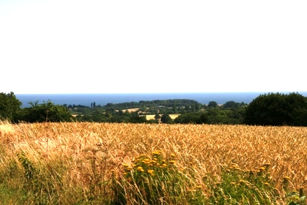 Von der Dünenlandschaft, die sich in südlicher Richtung an der Küste anschließt, sahen wir nur Wald, Wald und Wald. Irgendwo muss doch die Ostsee sein. Weder bei Aspet noch bei Yngsjö war ein Blick von der Straße aus möglich. Bei Brösarp bogen wir auf die 9 er in Richtung Kivik ab. Nach wenigen Kilometern nach einer Hügelkuppesahen wir das Chaos. Scheinbar war die ganze Befölkerung der Gegend unterwegs zum Strand. Eine Autoschlange so weit das Auge blicken konnte. Uns war klar, da geht es nicht weiter. Wenigstens ein kleiner Blick aus der Ferne ließ uns die Ostsee erkennen.