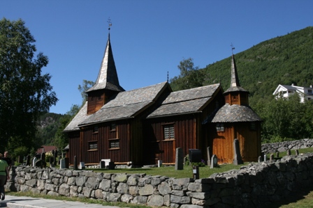 Sehenswert ist hier die alte Stabkirche aus dem 13. Jahrhundert. Im Helling Kafe kann man auch in Deutscher Sprache bestellen, denn die Chefin Ilona Giese ist Deutsche.