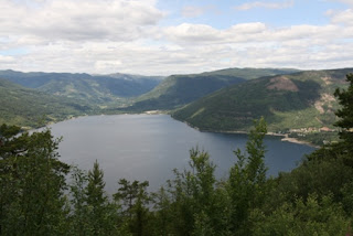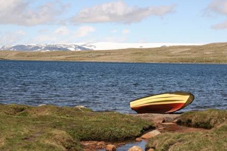 Leider haben wir Keines der hier lebenden 15000 wilden Rentiere gesehen. Über Nebenstrassen, die teilweise an Rüttelsiebe erinnerten, fuhren wir am Tinnsjo-See entlang, über Austbygda, dem Rjukanfossen und Rauland ( machte seinem Namen Ehre ) bei Haukeligrendbogen wir wieder auf die E134. Sehr beeindruckend ist, wie die Norweger mit ihrer Landschaft umgehen.Auf unserer Fahrt über diese Höhen ist uns kein einziges großes Hotel aufgefallen. In diesem sehr beliebten Skigebiet gibt es nur Hütten, die sich durch ihren Farbanstrich und die Begrünung der Dächer fast unbemerkt in die Landschaft einfügen. Es ist eine richtige Augenweide.