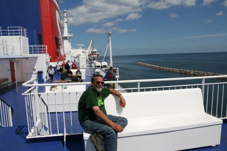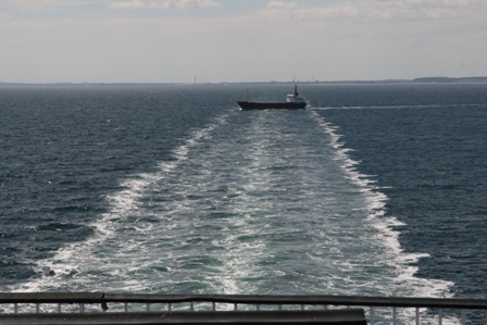 Die Verladung zog sich ein bisschen hin, so daß wir mit leichter Verspätung den Hafen verliessen. Die ruhige Überfahrt bei herrlichem Sonnenschein verkürzten wir uns natürlich mit ..... Kaffee.