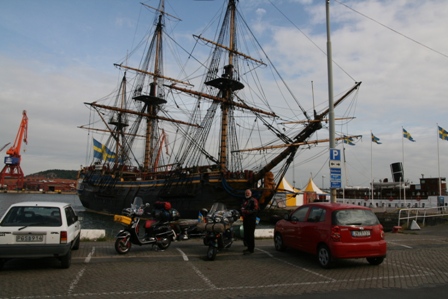 Nach einer ruhigen Nacht und einem guten Frühstück brachen wir am 08.07.2010 um 08:00 Uhr auf zur Weiterfahrt nach Norwegen. Um 08:45 Uhr erreichten wir nach 46 Kilometern Göteborg. Der kleine Abstecher in die Stadt zum Hafen lohnt sich auf jeden Fall. Hier liegt auch der Nachbau des Ostindienseeglers Götheborg zur Besichtigung vor Anker. Das Original ist kurz vor der Hafeneinfahrt bei der Rückkehr aus China auf Grund gelaufen und gesunken. Ein beeindruckendes Schiff.