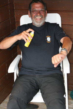 Pünktlich um17:30 Uhr landeten wir in Vaborg in Schweden. Klar, daß auch unsere PAvs dementsprechend umgeflaggt waren. Ohne Kontrolle ging es durch den Zoll, scheinbar machten wir einen ehrlichen Einddruck. In Anbetracht der späten Zeit und dem Appetit auf geräucherten Fisch steuerten wir gegen 19:00 Uhr einen Zeltplatz in Kungsbacka an.