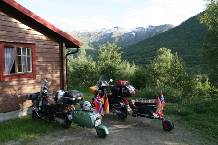 Auf der Fähre am Laerdalsfjorden von Fodnes nach Mannheller trafen wir dann zwei Holländer, die mit ihren Honda 50 SS zum Polarkreis unterwegs waren. Alle Achtung. Wir waren scheinbar nicht die einzigen Abenteurer auf großer Fahrt.
