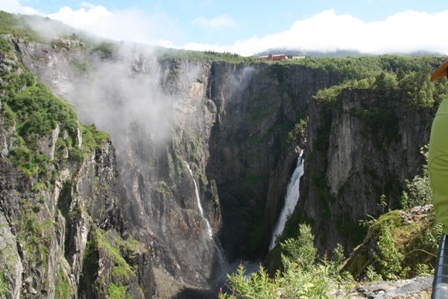 Kurz nach Eidfjord erreichten wir auf 181 Metern den Voringfossen, mit einer Fallhöhe von 183 Metern zählt er zu den bekanntesten Wasserfällen Norwegens. Weiter ging es bei bestem Wetter wieder hinauf in die Hochebene.